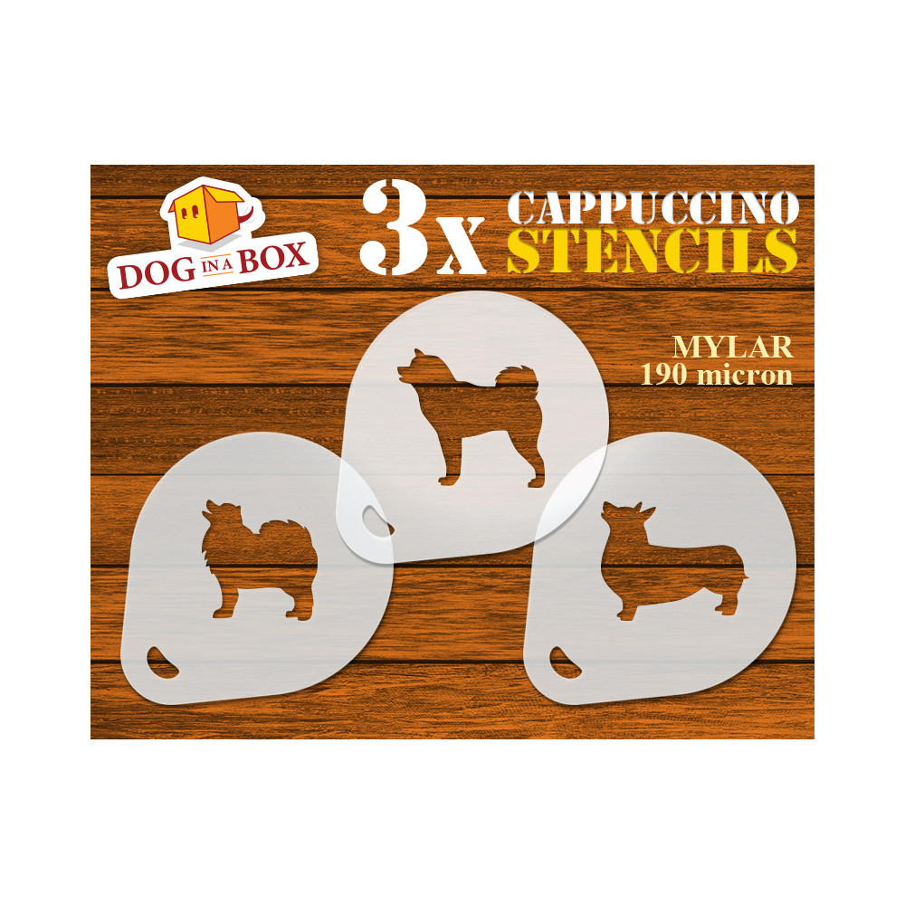 Hunde schablonen n.4 (3er-Set) Cappuccino und Kaffee Kakaopulver Dekor Schablone - Face Painting Schablonen