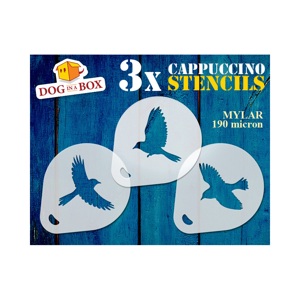 Vogelschablone n.4 (3er-Set) Cappuccino und Kaffee Kakaopulver Dekor Schablone - Face Painting Schablonen