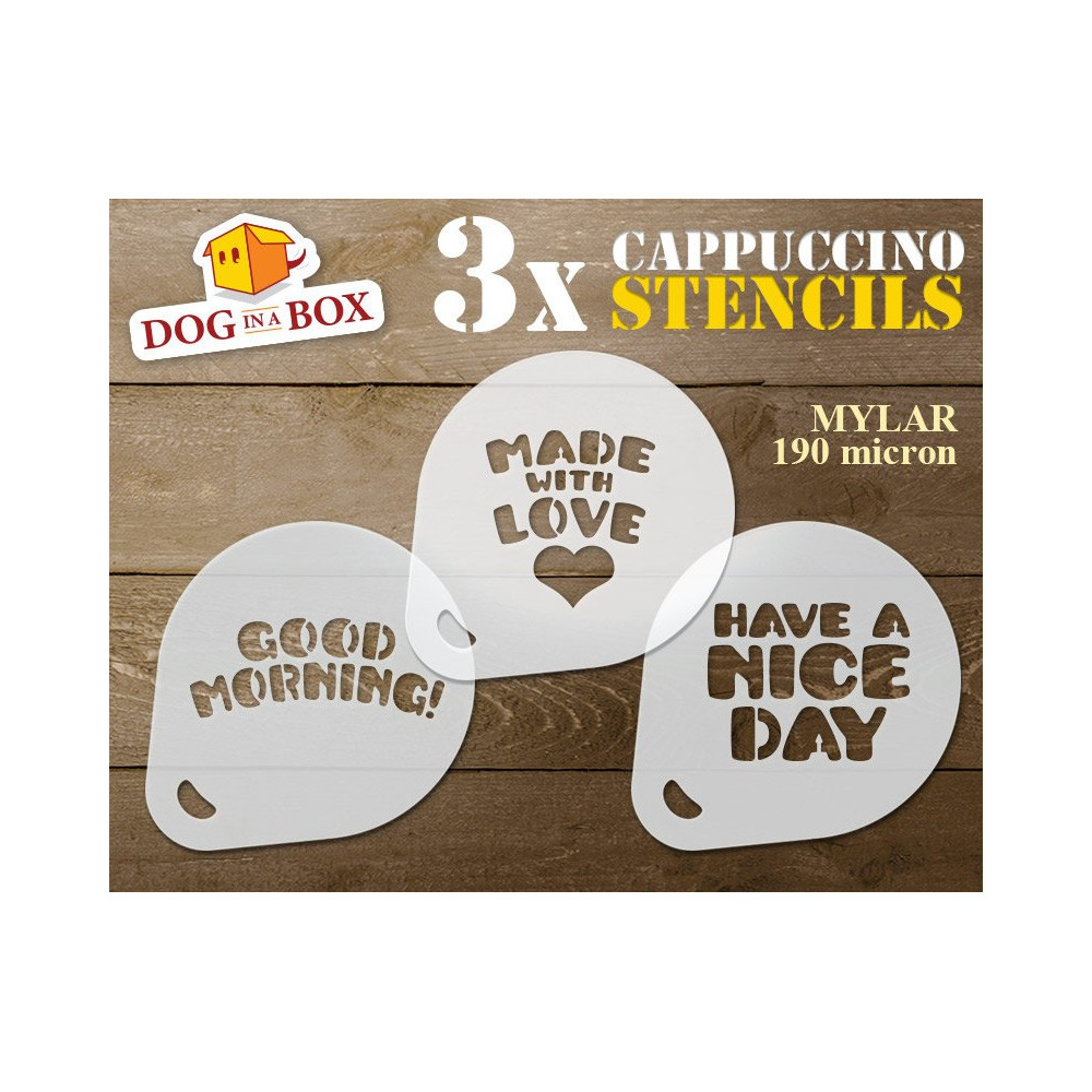 Guten Morgen und mit Liebe gemacht Schablone (3er-Set) Cappuccino und Kaffee Kakaopulver Dekor Schablone - Face Painting Schablo