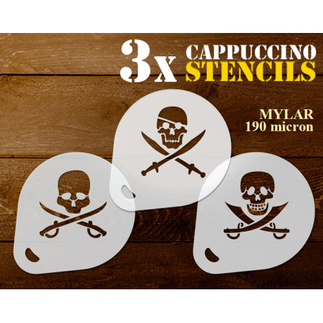 Piratenschablonen n.3 (3er-Set) Cappuccino und Kaffee Kakaopulver Dekor Schablone - Face Painting Schablonen