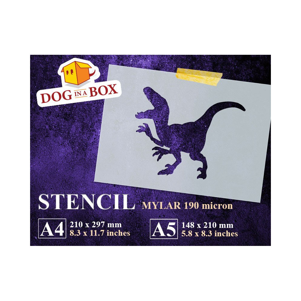 Wiederverwendbare Velociraptor-Schablone zum Malen auf Holz, Wänden oder Stoffen.