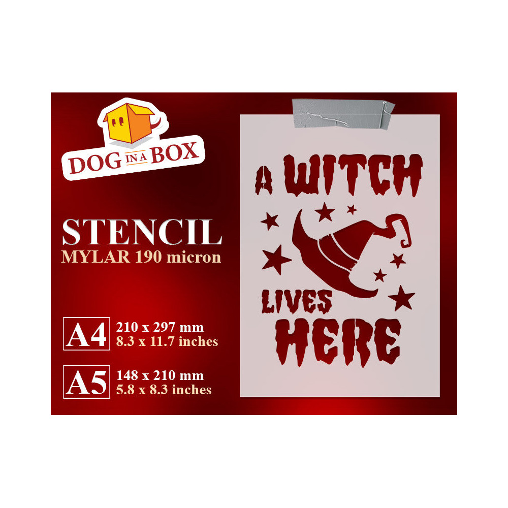 "Eine Hexe lebt hier" -Schablone für Halloween, die auf Holz, Wand oder Stoffen malt.