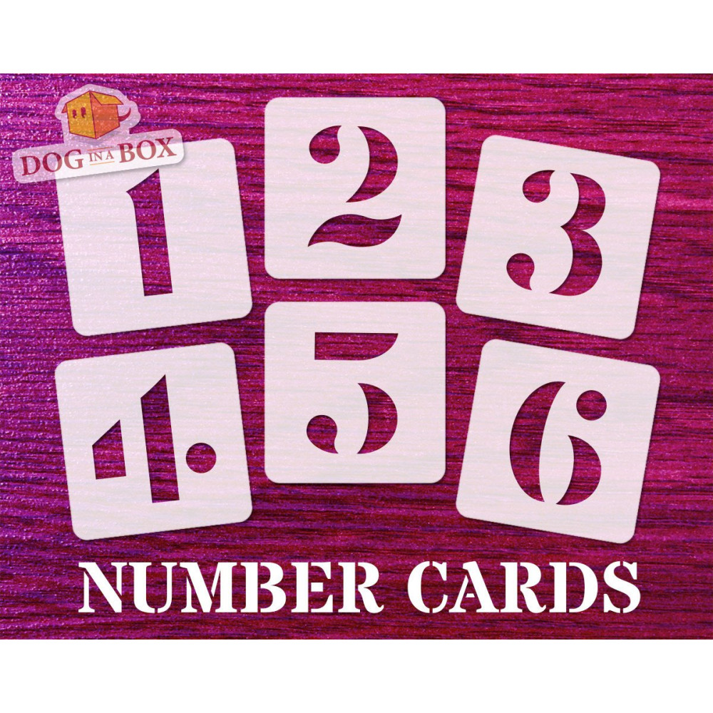 Set mit 10 (+2) einzelnen Zahlenkartenschablonen.