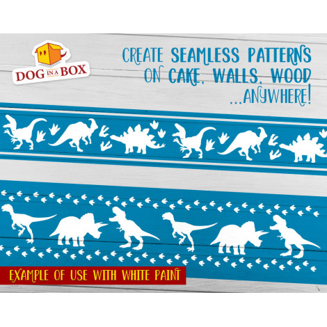 Dinosaurier Kuchen oder Wandränder Schablonen n.1 - Set von 2 wiederverwendbaren Schablonen zum Dekorieren von Kuchen oder Wände