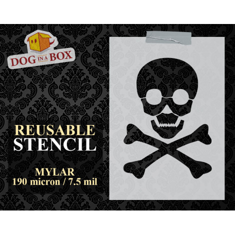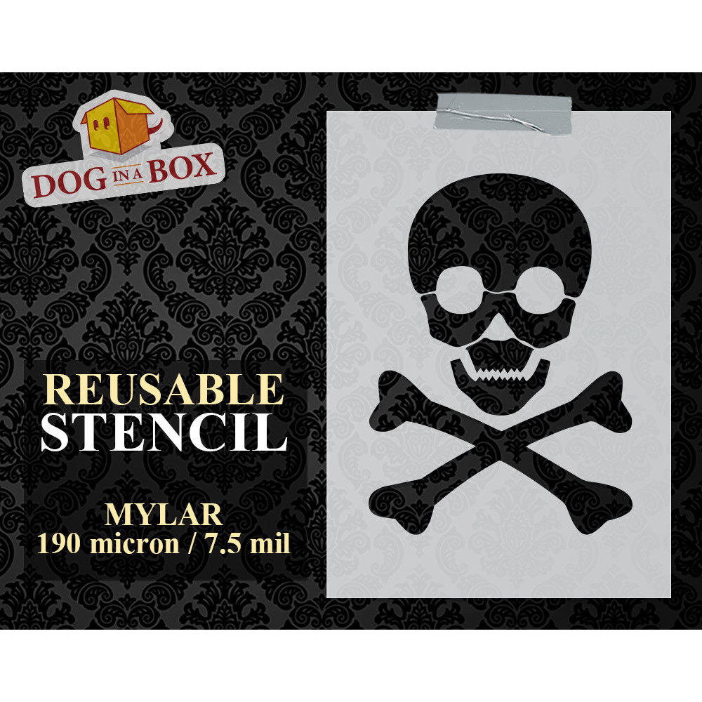 Wiederverwendbare Schablone von Skull and Bones zum Malen auf Holz, Stoffen und Wänden.