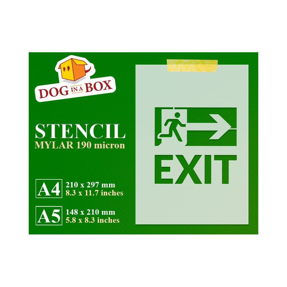 Wiederverwendbare Schablone des EXIT-Zeichens zum Malen auf Holz, Stoffen und Wänden.