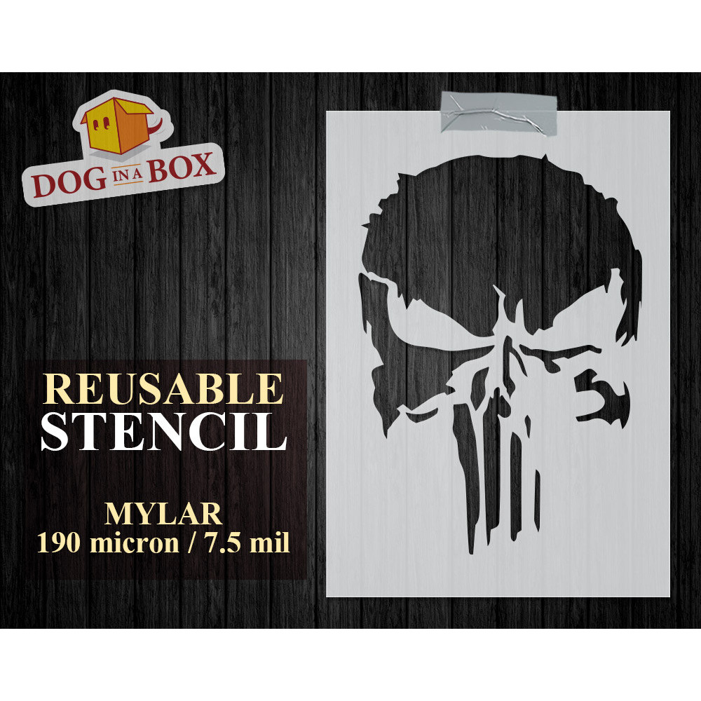 Schädelschablone n.2 - The Punisher Graffiti-Schädelschablone für Wanddekoration, Holzschilder und Stoffe.