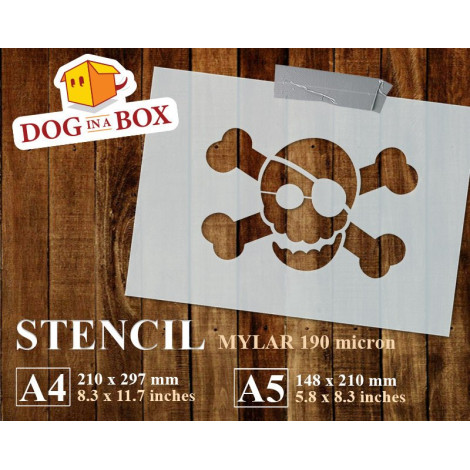 Piratenschablone Nr. 4 - Wiederverwendbare Schablone für Schädel und Knochen für Holz, Wände, Stoffe und Partydekor