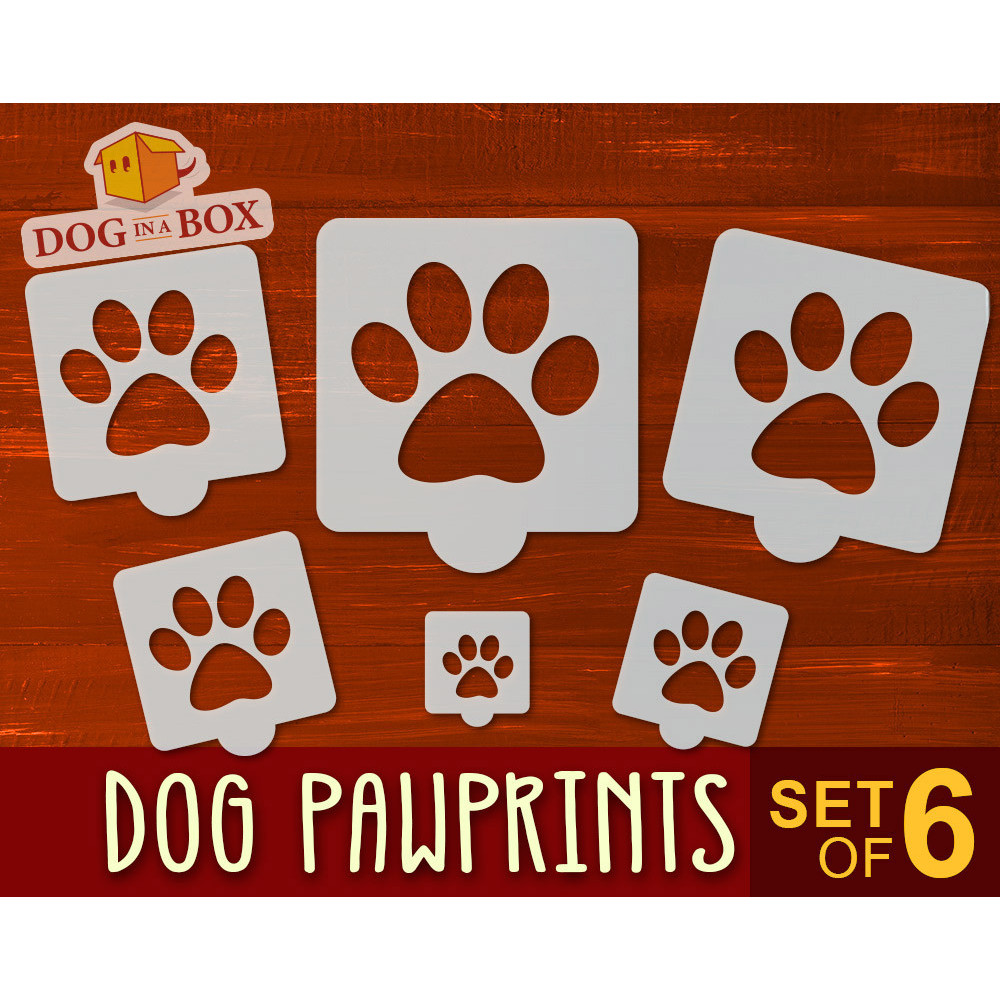 Schablonen von Hundepfotenabdrücken - Set mit 6 verschiedenen Größen. Wiederverwendbare Pfotenabdruckschablonen