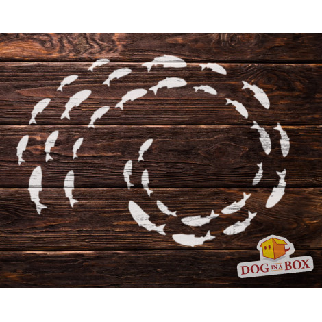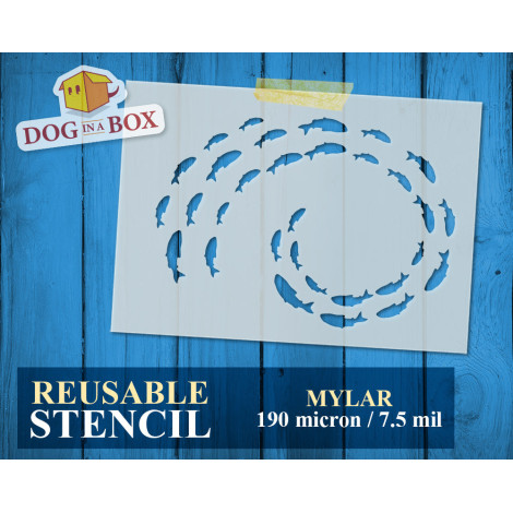 Wiederverwendbare Fischschwarmschablone zum Malen auf Holz, Wänden oder Stoffen.