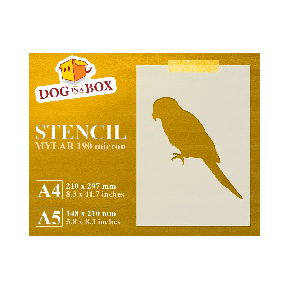 Wiederverwendbare Papageienschablone zum Malen auf Holz, Wänden oder Stoffen.