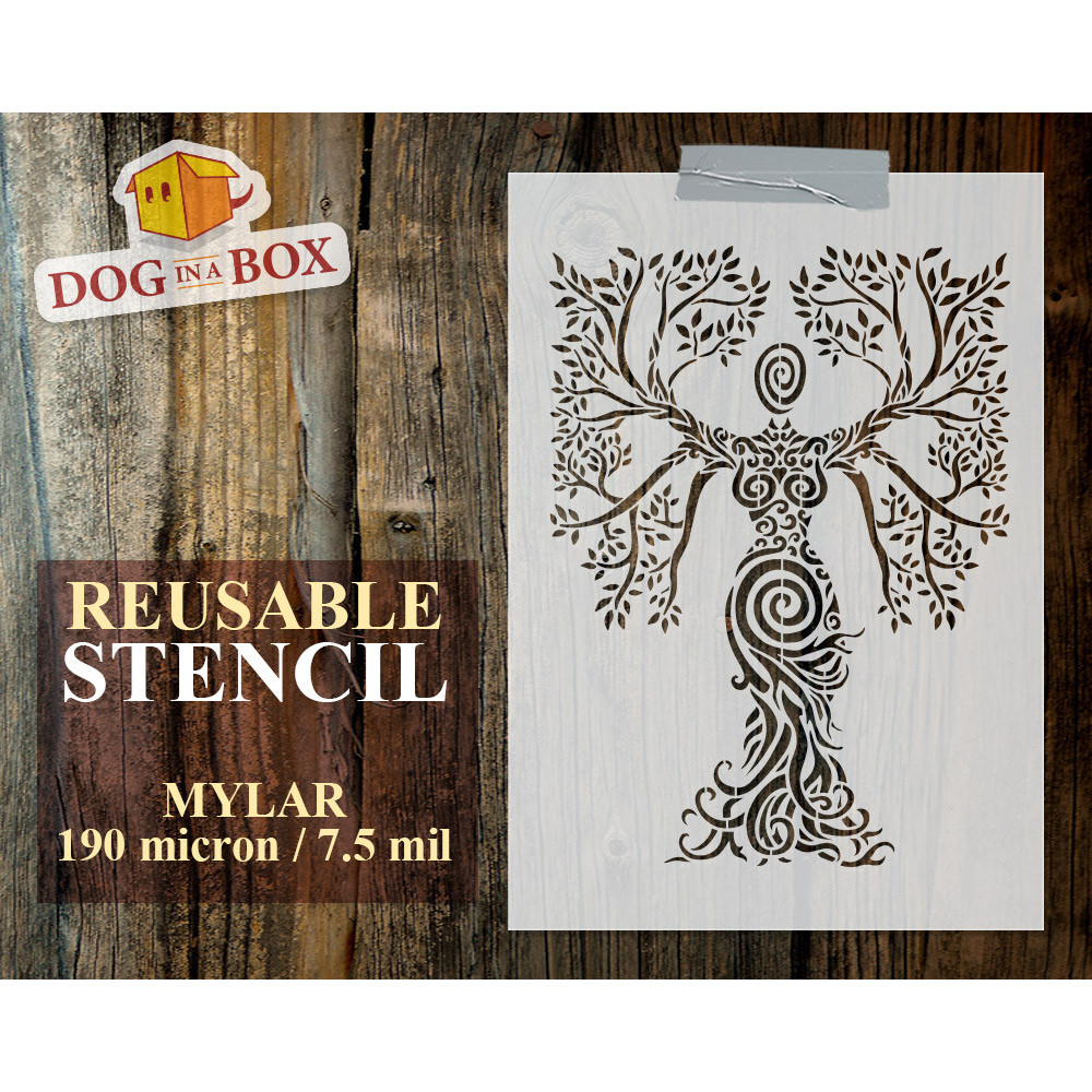 Frauenbaumschablone n.1 - Baum des Lebens Schablone, Yggdrasill Schablone für Wanddekoration und Holzschilder