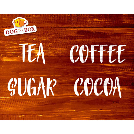 Dieses Set enthält 4 verschiedene Schablonen: TEE, KAFFEE, ZUCKER und KAKAO