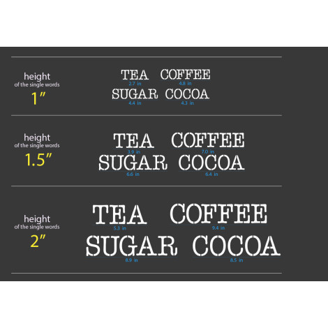 Dieses Set enthält 4 verschiedene Schablonen: TEE, KAFFEE, ZUCKER und KAKAO