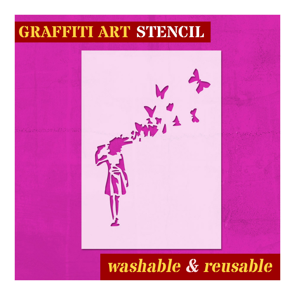 Mädchen und Schmetterlinge Schablone n.1 - Street Art Schablone zum Malen. Graffiti Schablone.
