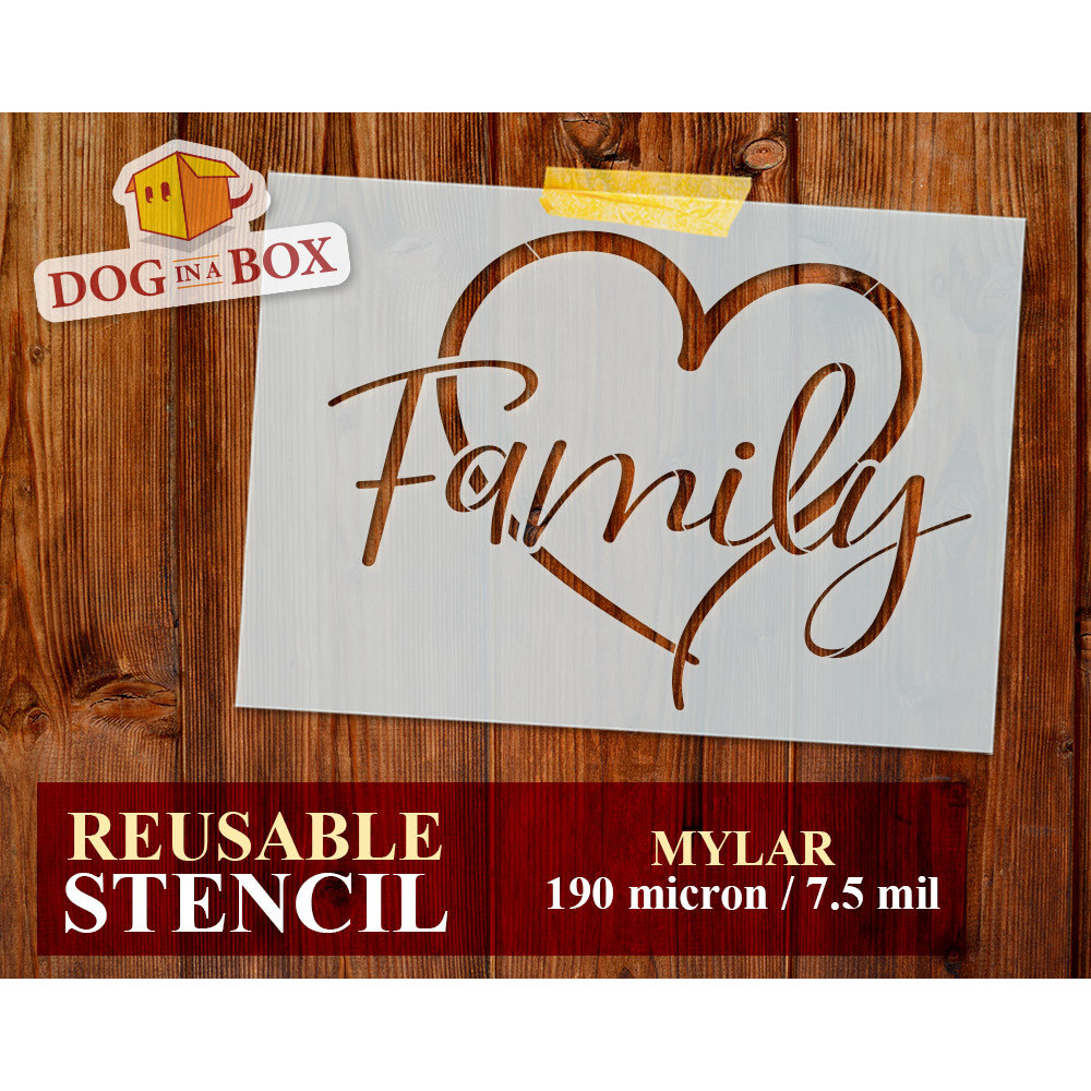 Wiederverwendbare Schablone "Family" zum Malen auf Holz, Stoffen und Wänden.