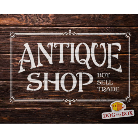 Wiederverwendbare Schablone "Antique Shop" zum Malen auf Holz, Stoffen und Wänden.