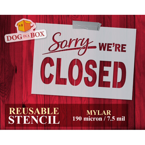 "Sorry we're Closed" Schablone Nr. 1 - Wiederverwendbare Schablone im alten Stil für Schilder. Vintage "Geschlossen" schablone