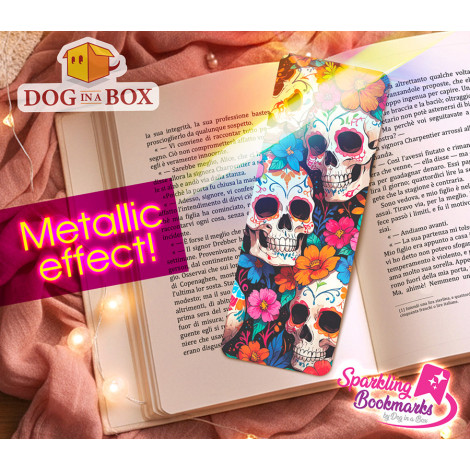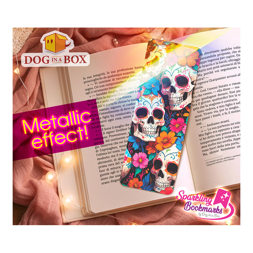 Dia de Los Muertos Lesezeichen nr.2 – Lesezeichen mit Metallic-Holo Effekt, Totenkopf Lesezeichen