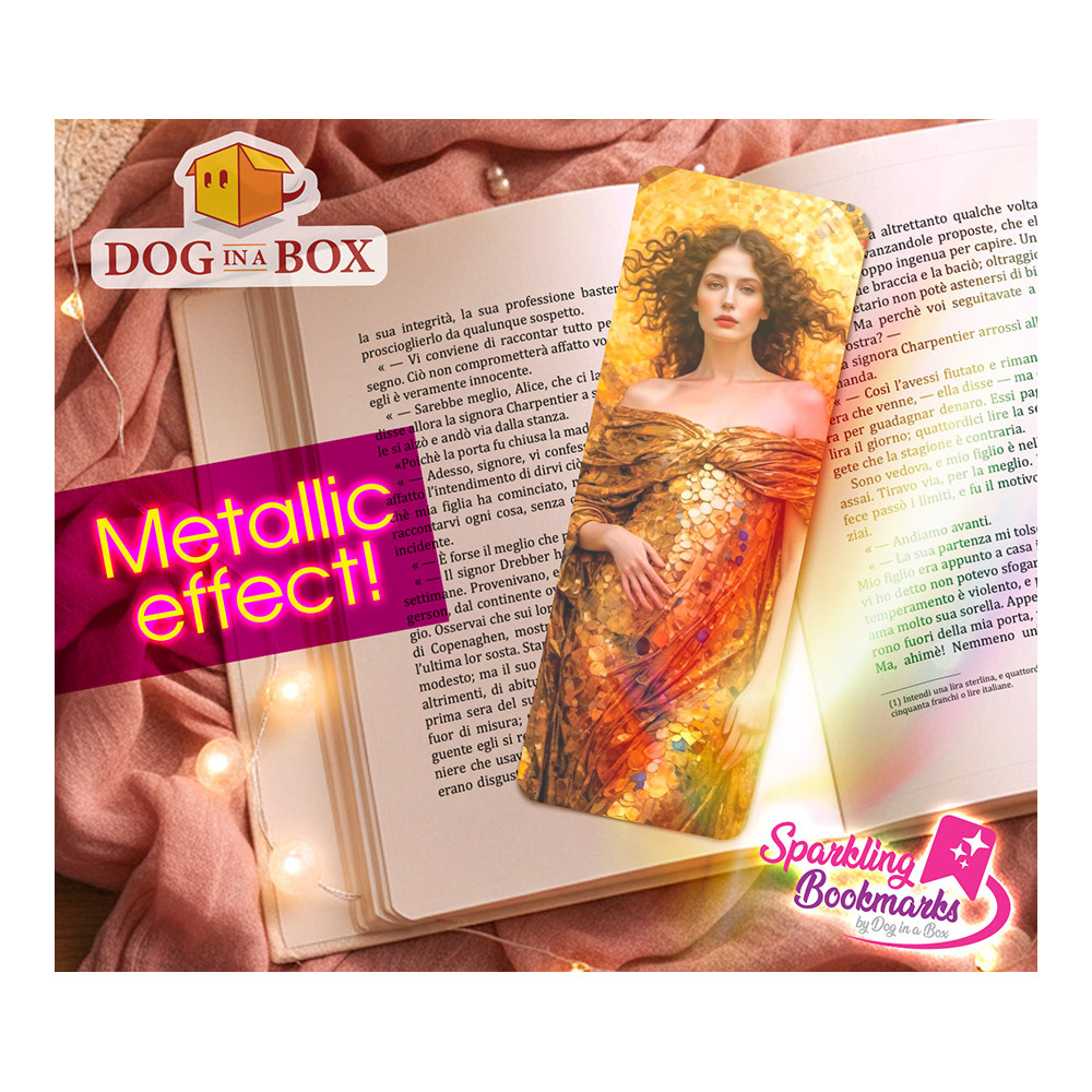 Frau in Gold Lesezeichen nr.4 - Lesezeichen mit Metallic-Holo Effekt, goldenes Lesezeichen im Klimt Stil