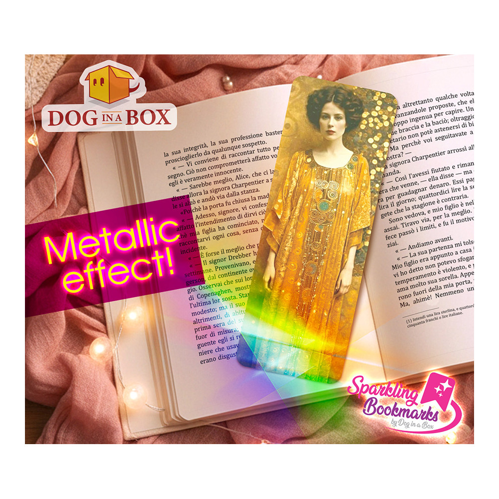 Frau in Gold Lesezeichen nr.5 - Lesezeichen mit Metallic-Holo Effekt, goldenes Lesezeichen im Klimt Stil