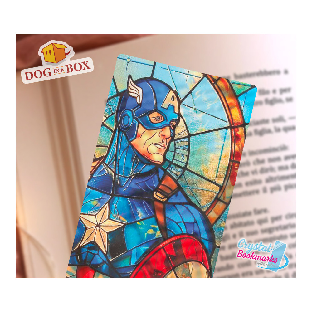 Captain America Lesezeichen Nr. 1 – Handgemachtes transparentes Lesezeichen | Kristall, Buntglas Effekt | Marvel Avengers