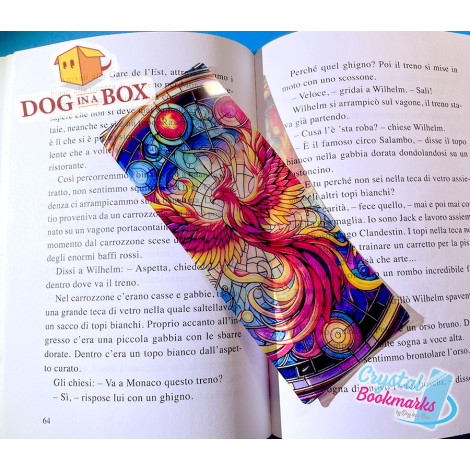 Phönix Lesezeichen Nr. 1 – Handgemachtes transparentes Lesezeichen | Kristall, Buntglas Effekt | Fantasie Lesezeichen