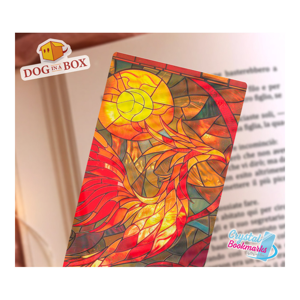 Phönix Lesezeichen Nr. 2 – Handgemachtes transparentes Lesezeichen | Kristall, Buntglas Effekt | Fantasie Lesezeichen