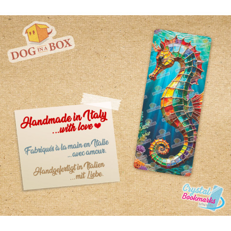 Seepferdchen Lesezeichen Nr. 1 – Handgemachtes transparentes Lesezeichen | Kristall, Buntglas Effekt | Lesezeichen Meeresleben