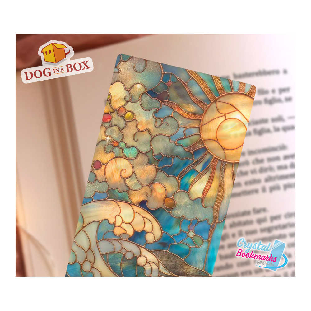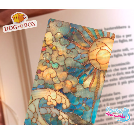 Sonne und Wellen Lesezeichen Nr. 1 – Handgemachtes transparentes Lesezeichen | Kristall, Buntglas Effekt | elegantes Lesezeichen