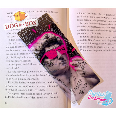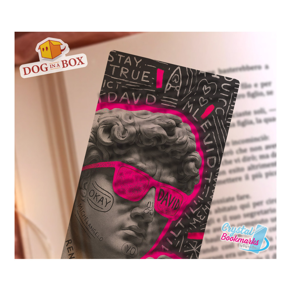 Michelangelos David Lesezeichen Nr. 1 – Handgemachtes transparentes Lesezeichen | Kristall, Buntglas Effekt | Pop Art