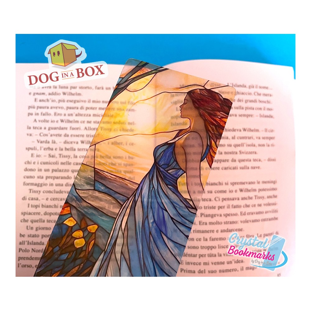 Dame bei Sonnenuntergang Lesezeichen Nr. 1 – Handgemachtes transparentes Lesezeichen | Kristall, Buntglas Effekt | Fantasy