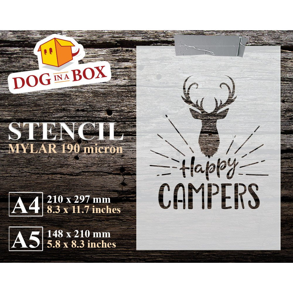 Wiederverwendbare "Happy Campers" -Schablone zum Malen auf Holz, Wänden oder Stoffen.