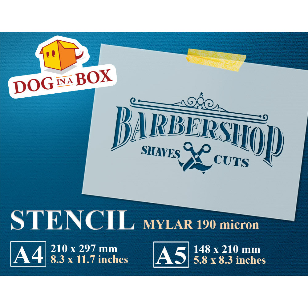 Barber Shop Schablone Nr. 1 - Wiederverwendbare Vintage Friseursalonschablone für Schilder, Holz und Stoffe