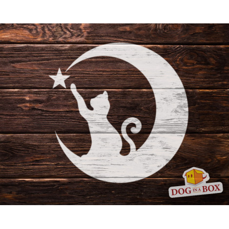 Cat on the moon stencil n.2 - Reusable cat stencil for wood signs, walls or fabrics.