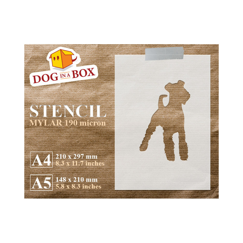 Reusable dog stencil for painting on wood, walls or fabrics.
