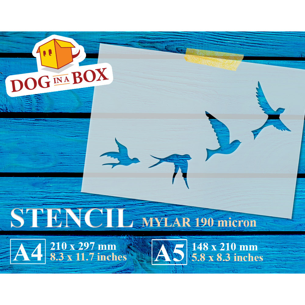 Reusable flying birds stencil for painting on wood, walls or fabrics.