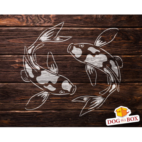 This is a stencil featuring two koi carps.