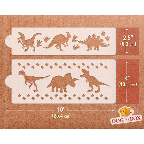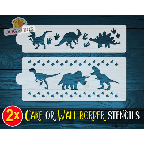 Dinosaurs cake or wall borders stencils n.1 - Set of 2 reusable stencils to decorate cakes or walls.