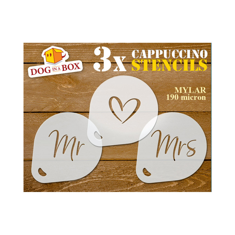 Mr & Mrs stencils (set of 3) Cookie and Cappuccino cocoa powder wedding decor stencil