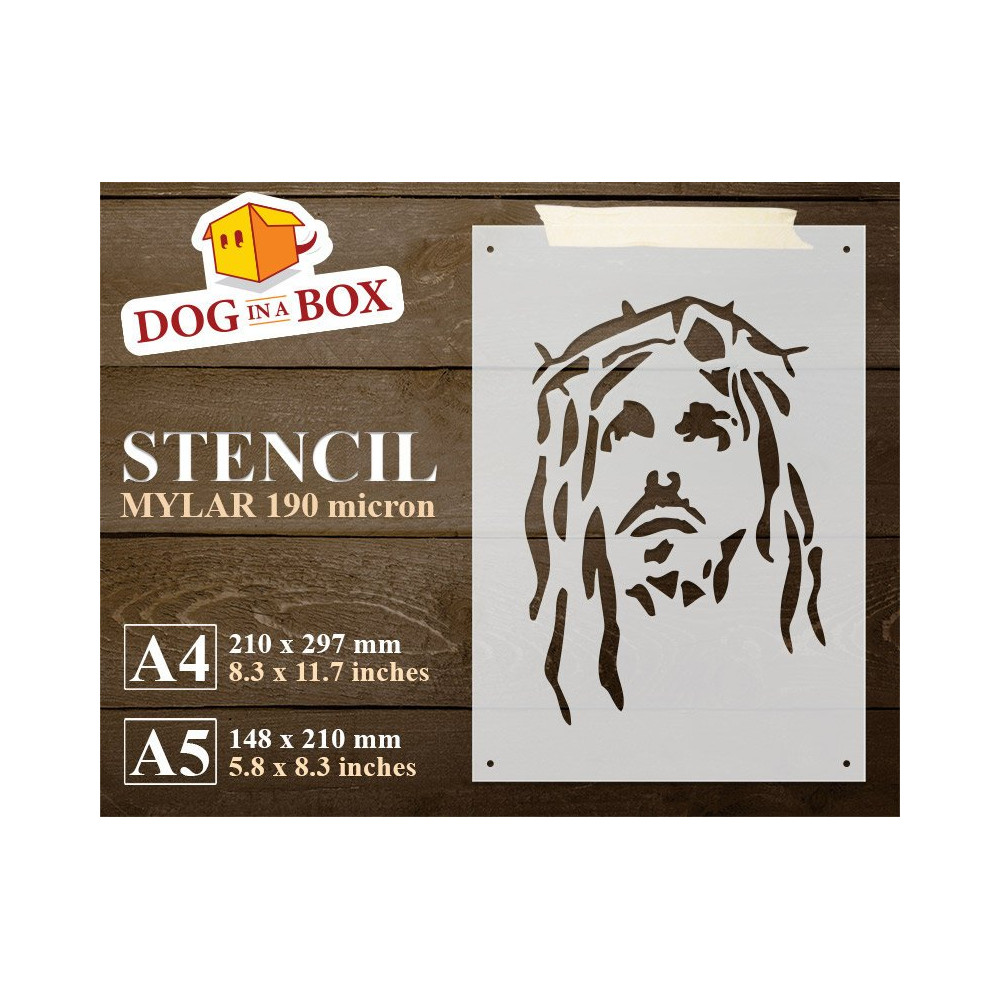Reusable Jesus stencil for wood, wall and fabrics.