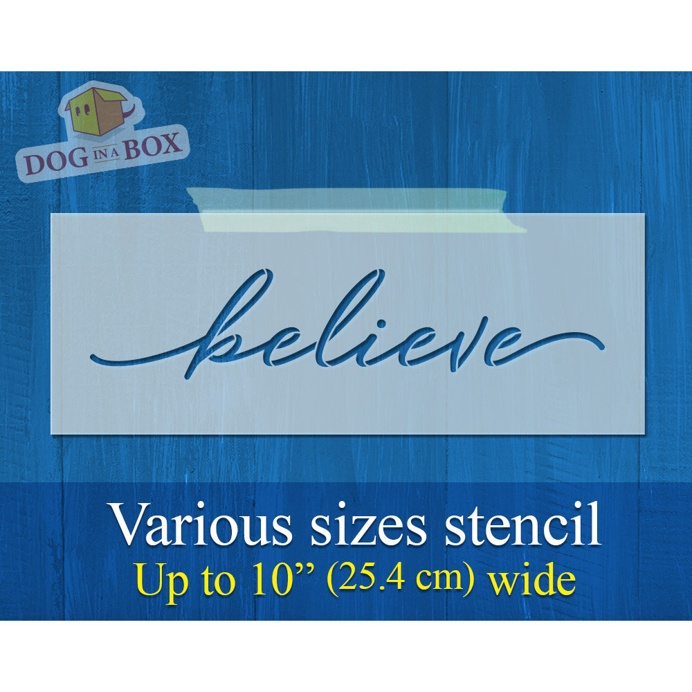 "Believe" reusable stencil for painting on wood, fabrics and walls.