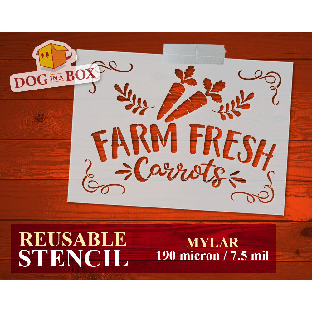 Farm Fresh Carrots stencil n.2 - Reusable farm stencil for wood signs, fabrics, bags, sacks and walls