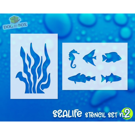 Sealife stencils set n.2 - 6 different sea life stencils. Reusable fishes stencil for decor