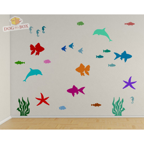 Set of 6 reusable stencil sheets (including 5 different fishes, 1 turtle, 1 seahorse, 2 seashells, 1 water plant)