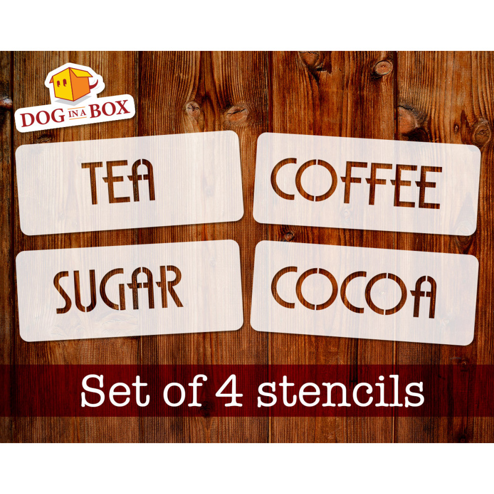 Tea, Coffee, Sugar, Cocoa stencils SET of 4 - Reusable stencils for jar decor - Design n.4