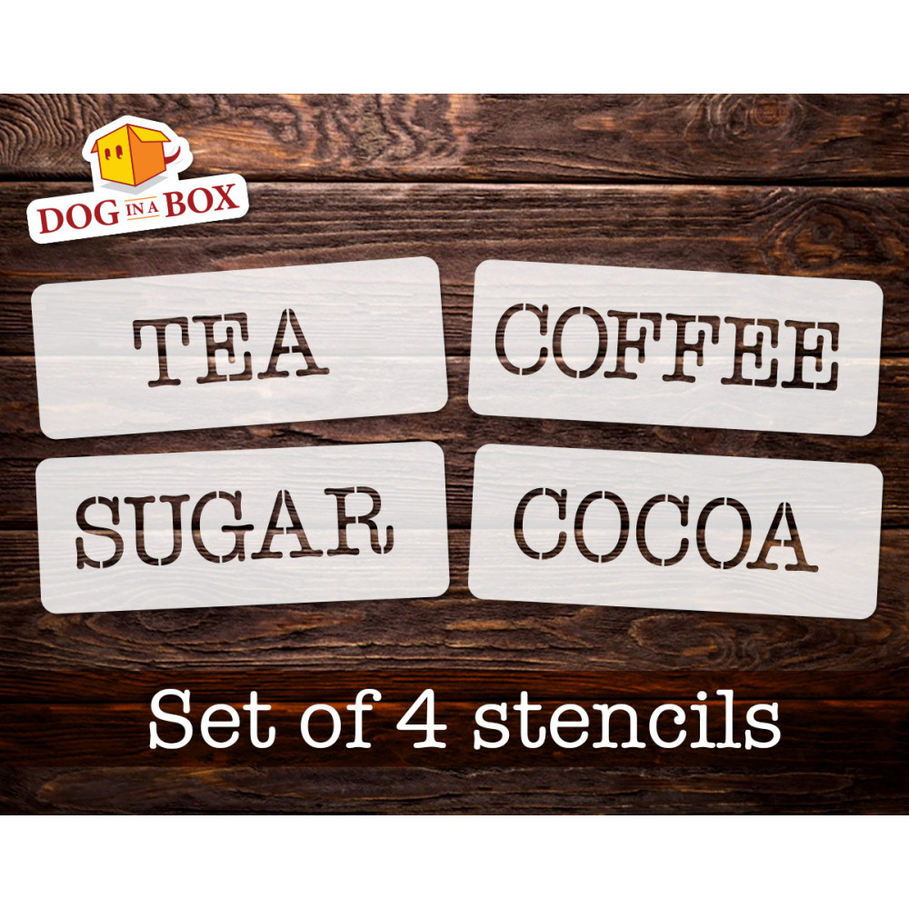 Tea, Coffee, Sugar, Cocoa stencils SET of 4 - Reusable stencils for jar decor - Design n.5