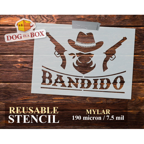 "Bandido" stencil n.1 - Reusable vintage Far West sign stencil for wall painting and wood signs
