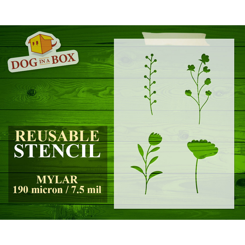 Flowers stencil set n.1 - Reusable stencil with many flowers in various size, perfect for painting