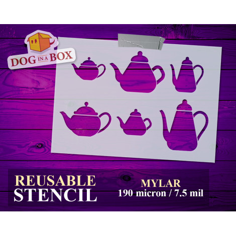 Teapots stencil set n.1 - Reusable stencil with many tea pots in various size, perfect for painting